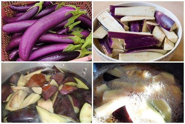 - Đem cà tím đi rửa rồi thái thành từng khúc.