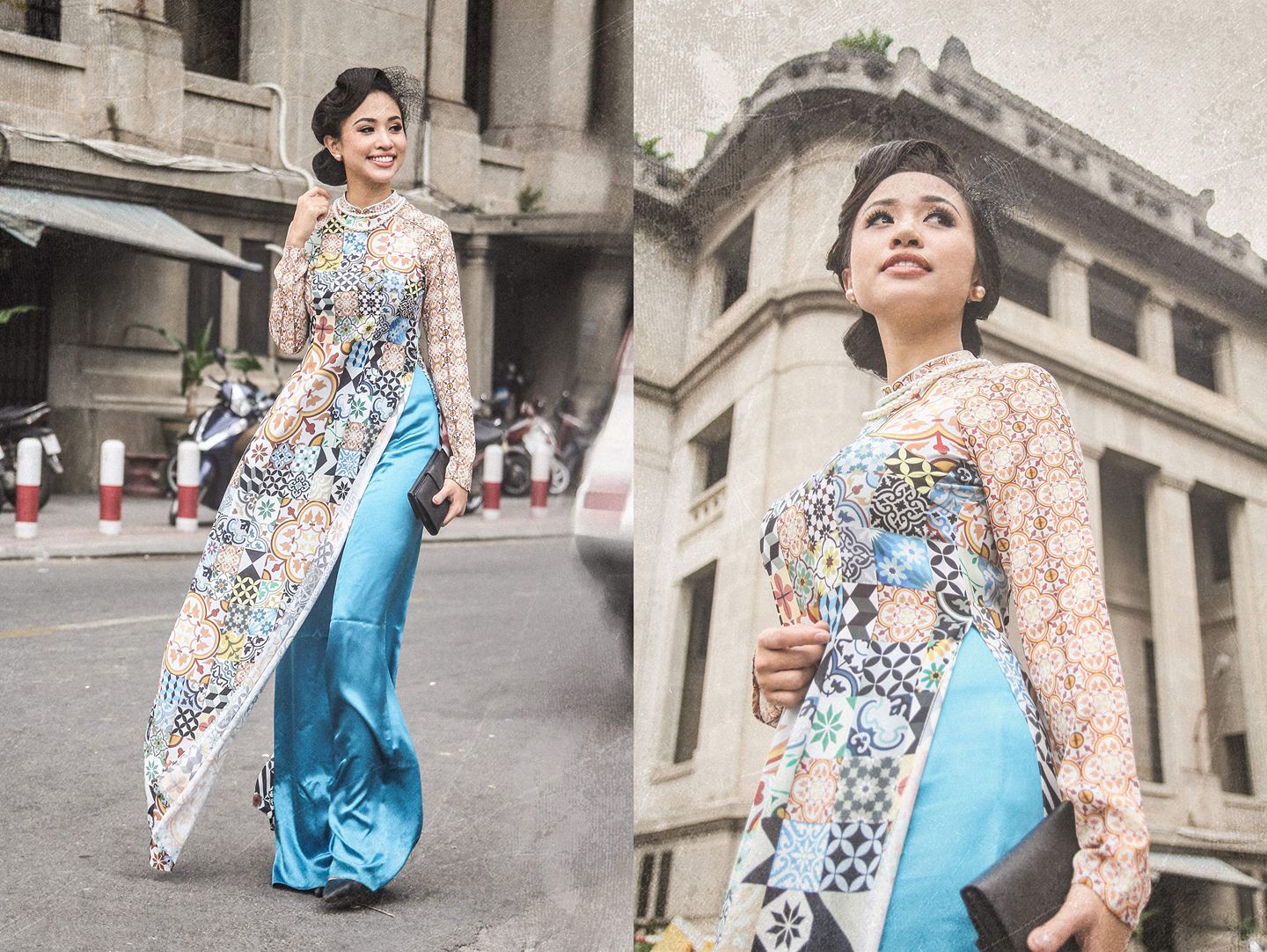Mới đây MC Thanh Vân Hugo vừa có bộ ảnh chụp tại TP.HCM tái hiện hình ảnh "Cô Ba Sài Gòn" với áo dài vintage và kiểu bới tóc cổ điển.