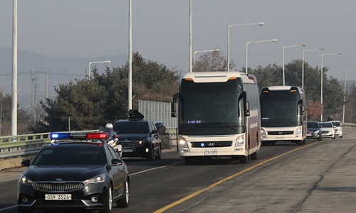 Xe chở đoàn đại biểu Triều Tiên đến Seoul