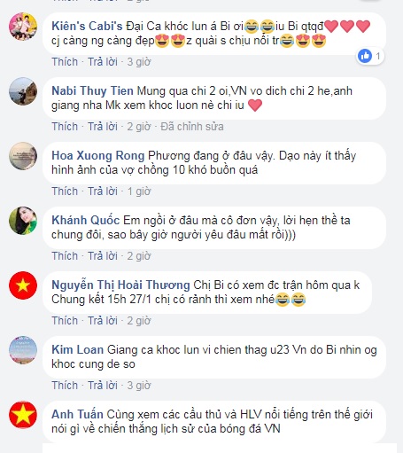 Một facebooker có nickname "Độc Bước" cho rằng, "Giang Ca đã khóc! Và cùng tận hưởng phút giây hạnh phúc cùng đội tuyển U23 Việt Nam!". Nickname khác là "Khaly Lien" bày tỏ, "Chia tay trả nhẫn rồi, lánh nạn trốn luôn rồi. Một người muốn bình yên ở nơi xa xôi, một người thì ở nhà - Việt Nam khóc. Có ai được cầu hôn rồi phải đi chơi cùng nhau vui vẻ hạnh phúc bên nhau chứ. Còn ở đây người con gái buồn 1 mình, buồn, khóc, cắt tóc, còn 1 người tung MV "Vỡ"...".