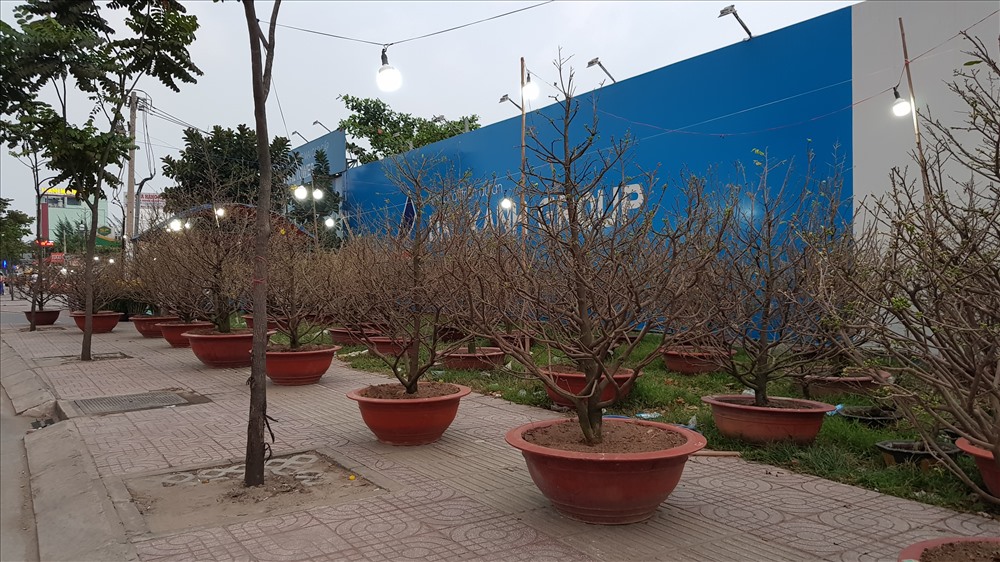 Ngoài ra, để đáp ứng nhu cầu đa dạng của người dân thành phố, nhiều thương lái cũng vận chuyển đào từ các tỉnh phía Bắc vào bán. Hiện giá của những cây đào được định giá từ 2-5 triệu đồng tùy kích cỡ. Cá biệt có nhiều cây đào trị giá hàng chục triệu đồng cũng sẵn sàng chờ chủ nhân rước về. Ảnh: Trường Sơn
