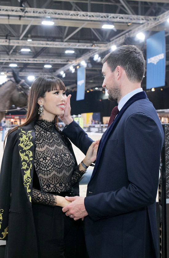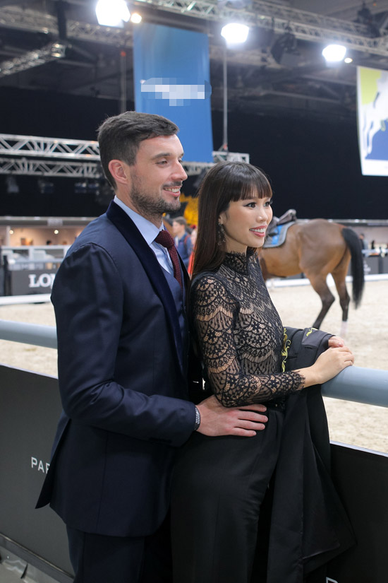 Cả hai đi xem đua ngựa, ở góc nghiêng này mới thấy phần bụng của Hà Anh hơi nổi 1 chút.