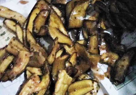 Đã làm mứt gừng trước đó nên chị Hoàng Đoàn, ở Tây Ninh, rất tự tin làm mứt khoai. Nhưng khoai bở quá nên khi chị đảo nhiều, nó bị vụn nát hết cả. "Tôi vừa lấy cái muỗng khẩy nhẹ khoai đã gẫy hết. Thế là tôi cho lên sên, trộn thêm khoai với bột, chiên ăn luôn", chị Đoàn hài hước chia sẻ.