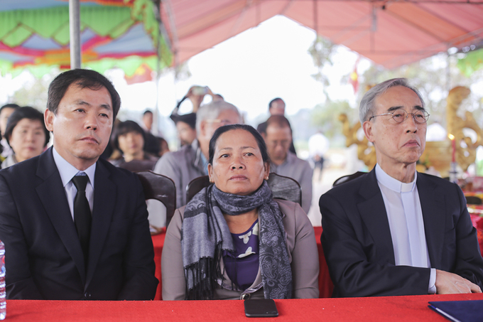 Đại biểu Quốc hội Hàn Quốc Kim Hyun Kwon cũng cúi đầu trước tấm bia ghi danh 135 nạn nhân vô tội. Đoàn Hàn Quốc đến lễ tưởng niệm gồm 41 người, là các giáo viên, nhà văn, nhà khoa học...