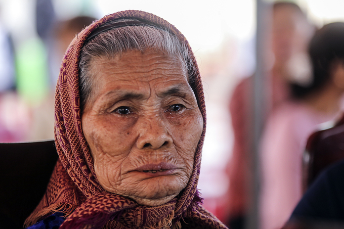 Bà Trần Thị Thú (80 tuổi) bật khóc khi nghe đọc lại những dòng lịch sử về trận càn của quân đội Hàn Quốc. Năm đó, bà mất cùng lúc một người con trai và một con gái.