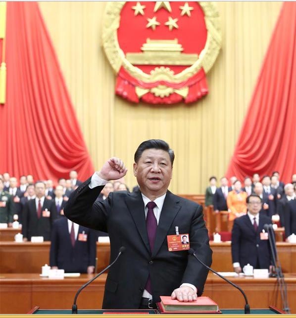 Ông Tập Cận Bình tuyên thệ nhậm chức sau khi tái đắc cử chức Chủ tịch Trung Quốc nhiệm kỳ hai (2018 - 2023). Ảnh: Tân Hoa xã