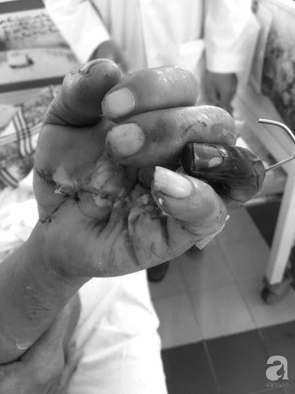 10 ngày sau mổ, bàn tay của bệnh nhân bị hoại tử một ngón, chỉ cứu được ngón cái, ngón trỏ và ngón giữa.