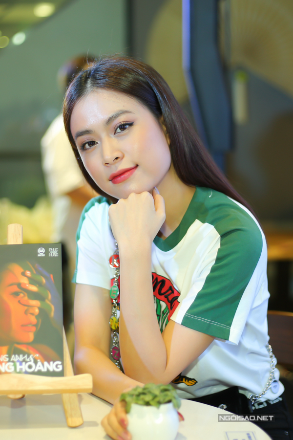 Tối 30/3 Hoàng Thùy Linh tới giao lưu và ký tặng độc giả của cuốn sách 'Vàng Anh và Phượng Hoàng'. Cô ăn mặc giản dị, khoe nhan sắc trẻ trung, xinh đẹp ở tuổi 30.