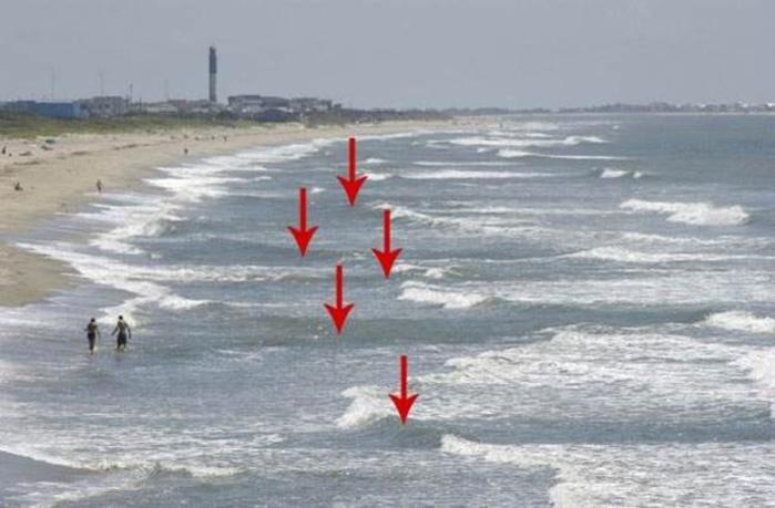 Mũi tên màu đỏ là nơi có dòng chảy xa bờ (Ảnh: safebee)