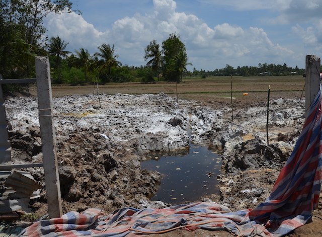 Sau khi phát hiện heo chết, công ty không trình báo chính quyền địa phương mà tự ý cho đào hố chôn dưới đất ruộng cặp trang trại (diện tích hố chôn khoảng 500m2).