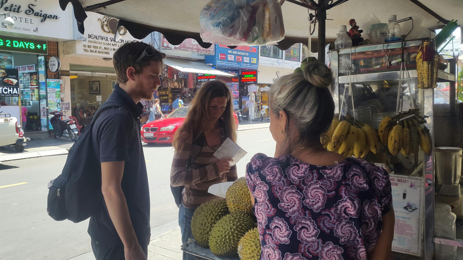 Lousva, thực khách đến từ Peru chia sẻ về hương vị sinh tố ở đây: “Rất tuyệt vời, tôi không cần phải ăn trái cây nhiều, tôi chỉ thích uống sinh tố. Tôi đặc biệt thích hương vị ở đây v́ nó không quá ngọt và béo”.