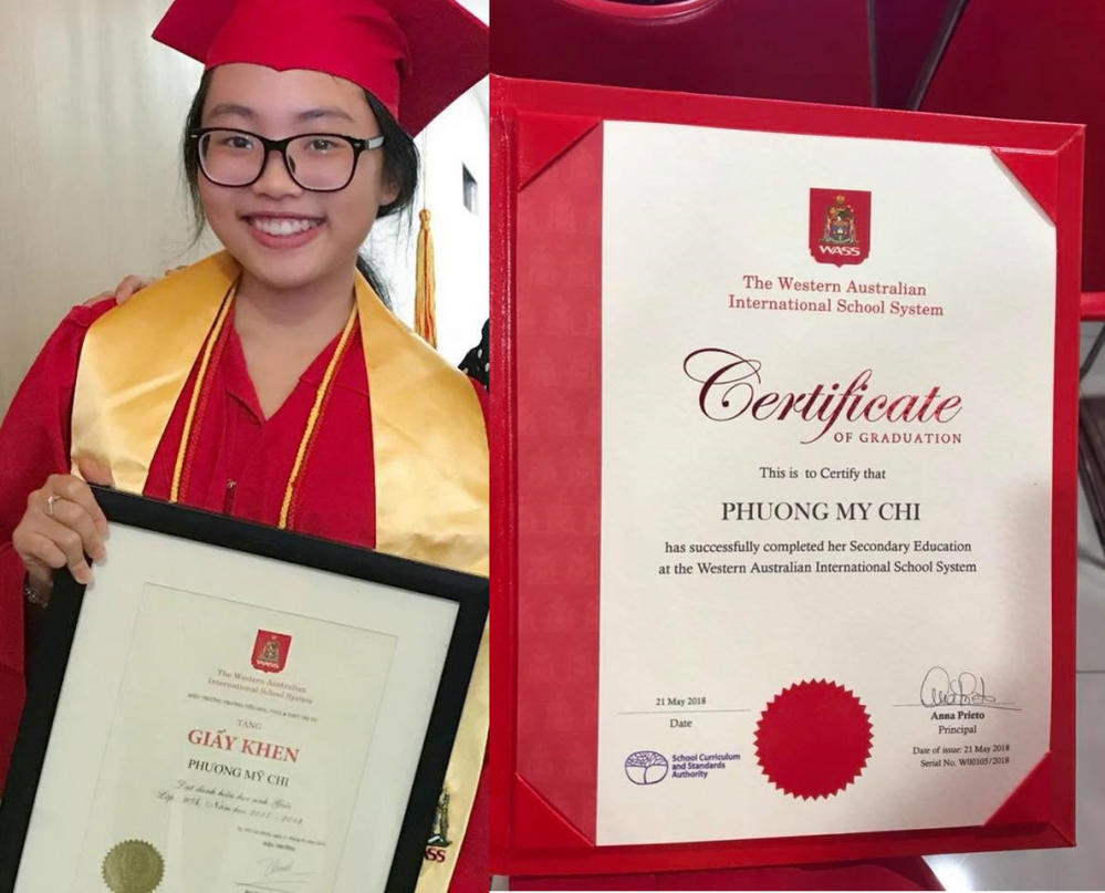 Thành tích học tập của Phương Mỹ Chi gây ấn tượng vì có nhiều điểm 9 điểm 10. Thậm chí, cô bé còn nhận được học bổng toàn phần, miễn toàn bộ học phí tại ngôi trường quốc tế danh tiếng theo học.