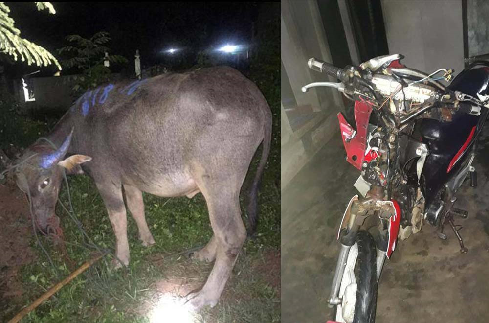 Trâu "điên" và chiếc xe máy của nạn nhân Huy