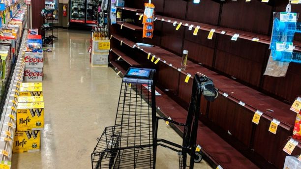 Các kệ nước đóng chai trong siêu thị tại Salem, Ore., vào cuối ngày thứ Ba 29 tháng 5 năm 2018, sau cảnh báo nước máy không an toàn cho trẻ em và người già do tảo nở. (Ảnh: Associated Press)
