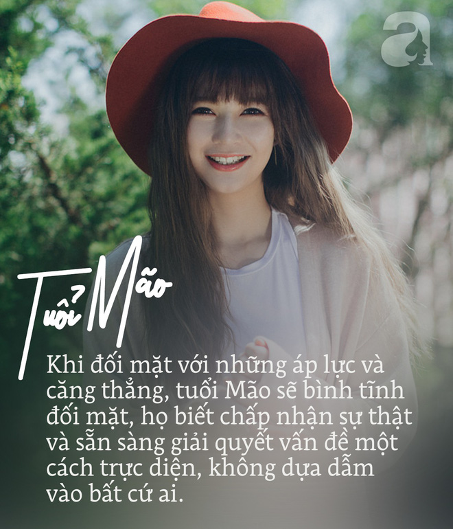 Tuổi Mão sống thực tế, không mơ mộng, họ biết cách điều tiết cảm xúc và khéo léo trong cách thể hiện tình cảm của mình, nên mọi thử thách đều vượt qua dễ dàng. Tuổi Mão tỉ mỉ và cẩn trọng hơn nhiều người nghĩ, họ không bao giờ biểu hiện sự lo lắng của mình, mà thay vào đó là những thái độ tích cực, không chỉ truyền năng lượng cho bản thân mà còn giúp người khác có động lực để vượt qua áp lực đang hiện hữu.