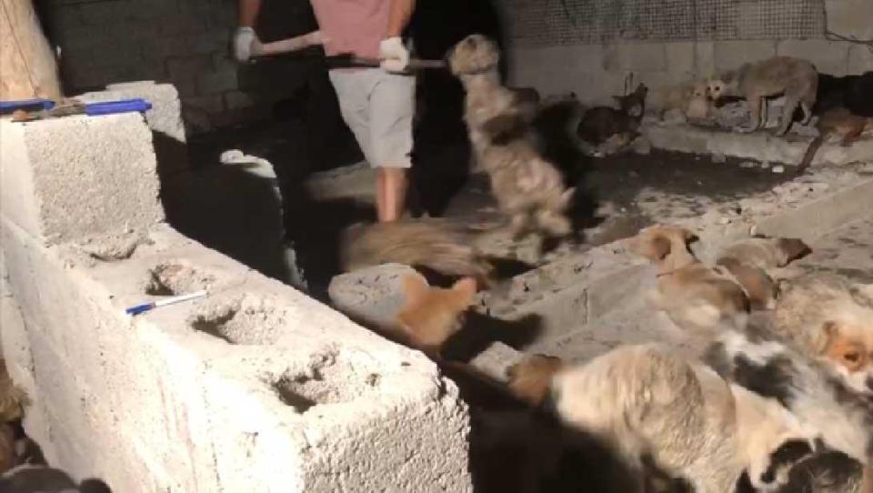 Những con chó sợ hãi bị nhốt trong những căn phòng tối tăm, bẩn thỉu, với vết máu vẫn còn tươi trên sàn