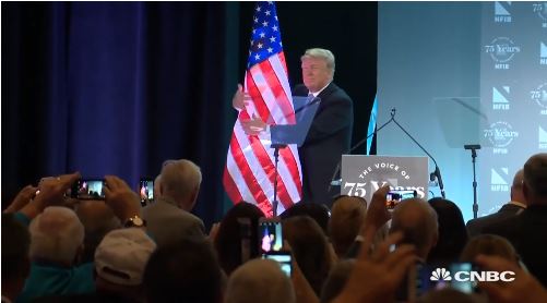 Sau bài phát biểu về sự hỗn loạn nhập cư, Tổng thống Mỹ đã tiến đến ôm lá cờ Mỹ.