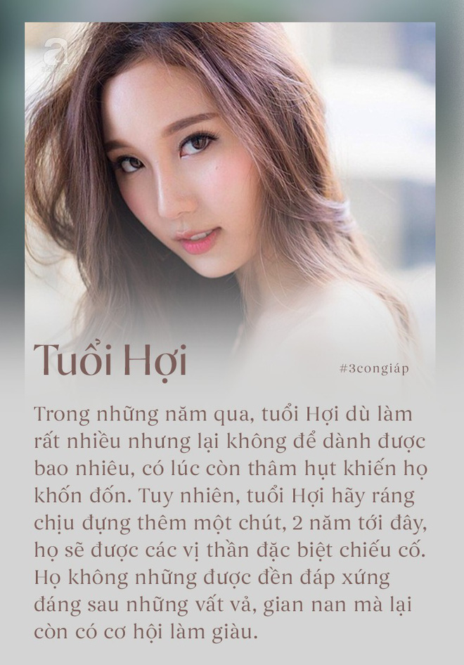 Trong những năm qua, tuổi Hợi dù làm rất nhiều nhưng lại không để dành được bao nhiêu, có lúc còn thâm hụt khiến họ khốn đốn. Tuy nhiên, tuổi Hợi hãy ráng chịu đựng thêm một chút, 2 năm tới đây, họ sẽ được các vị thần đặc biệt chiếu cố. Họ không những được đền đáp xứng đáng sau những vất vả, gian nan mà lại còn có cơ hội làm giàu, xây dựng cuộc sống vinh hoa phú quý khiến nhiều người ngưỡng mộ.
