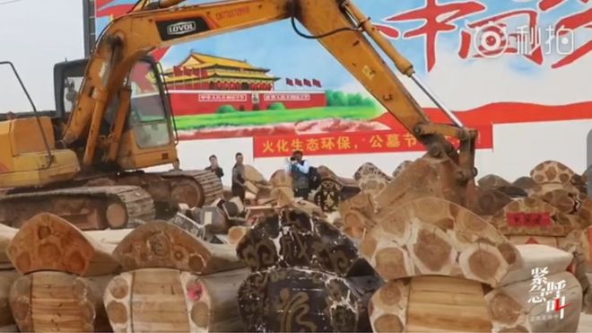 Truyền thông địa phương đăng tải h́nh ảnh các cỗ quan tài gỗ bị chất đống lên xe, và được chuyển đi khỏi thành phố Gao'an.