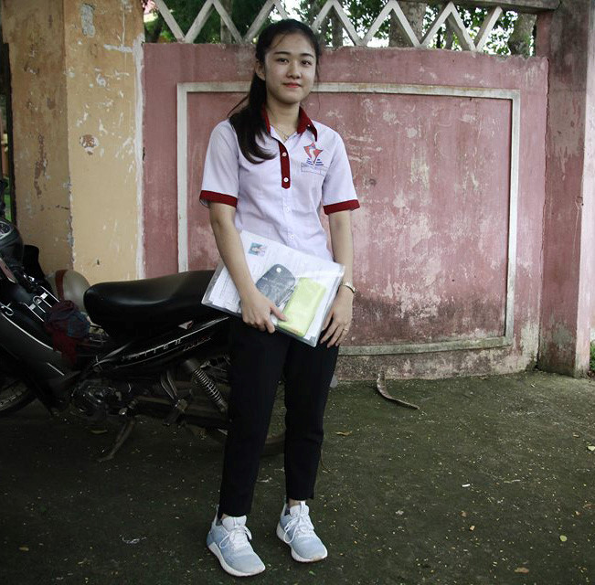 Đi thi THPT quốc gia, dù đôi chân bước đi tập tễnh, Lê Thị Hà Vi (cựu học sinh trường THCS&THPT Đông Du, TP Buôn Ma Thuột, Đắk Lắk) tự tin, vui vẻ. Hà Vi tâm sự sau 2 năm cố gắng luyện tập với chân giả, em đă quen và xem nó là trợ thủ đắc lực. Từ khi có chân gỗ, Hà Vi em có thể đi lại mà không phải dùng đến nạng.