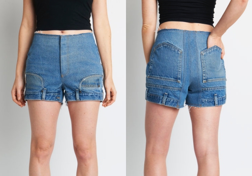 Mẫu quần El với thiết kế gấu trở thành cạp quần và ngược lại. Phần túi trước và sau cũng được làm lộn ngược.
