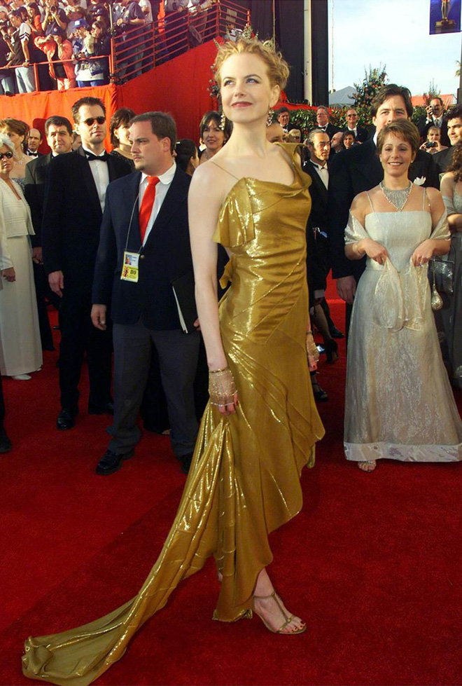 Với nước da trắng ngần, vóc dáng thon gọn và nhan sắc thuộc hàng biểu tượng của Hollywood, Nicole Kidman khoác lên mình bộ váy ánh kim vàng lộng lẫy khiến cô thu hút mọi ánh nhìn.