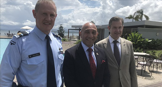 Bộ trưởng Quốc phòng New Zealand Ron Mark (giữa) trong chuyến thăm Fiji hồi tháng 3-2018 Ảnh: FIJI SUN