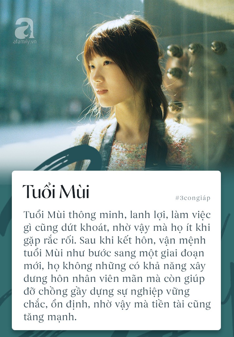 Tuổi Mùi thông minh, lanh lợi, làm việc gì cũng dứt khoát, nhờ vậy mà họ ít khi gặp rắc rối. Sau khi kết hôn, vận mệnh tuổi Mùi như bước sang một giai đoạn mới, họ không những có khả năng xây dưng hôn nhân viên mãn mà còn giúp đỡ chồng gầy dựng sự nghiệp vững chắc, ổn định.