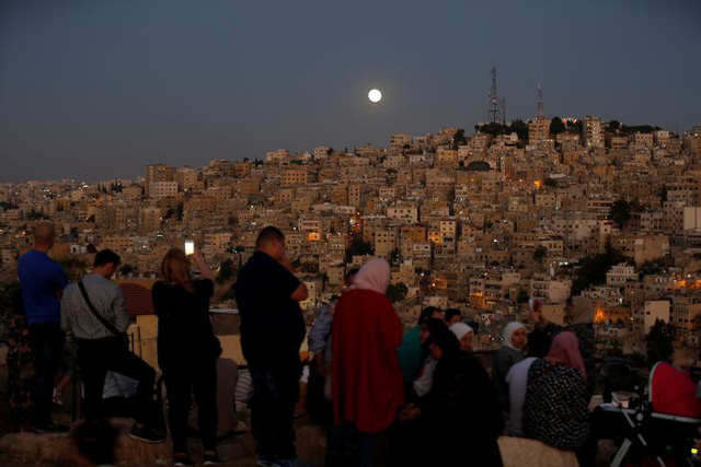 Những người yêu thiên văn ở Jordan chọn sẵn một vị trí thuận lợi để có thể chiêm ngưỡng hiện tượng nguyệt thực toàn phần dài nhất thế kỷ.