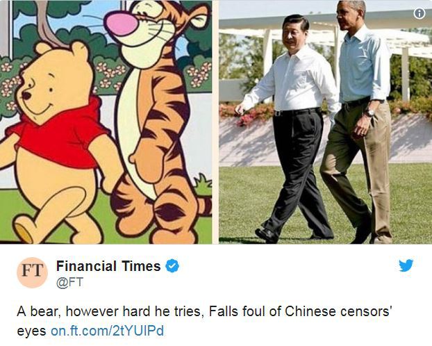 Ở Trung Quốc, sự kiểm duyệt truyền thông cực kỳ khắt khe. Tất cả các hình ảnh của bộ phim hoạt họa “Winnie the Pooh” và những nhân vật liên quan đều bị cấm trên tất cả phương tiện truyền thông nước này. Khi người dùng ở Trung Quốc cố gắng bỏ lên hình ảnh gấu Pooh lên mạng, họ sẽ nhận được thông báo nói rằng “nội dung bất hợp pháp.” Thậm chí, hình ảnh gấu Pooh cũng bị xóa trên trang mạng xã hội WeChat của Trung Quốc.