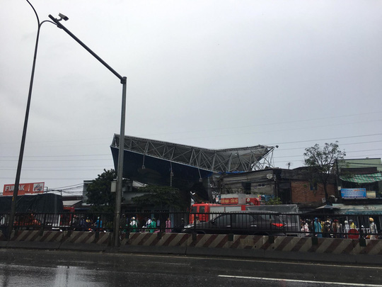 Chiều nay 10/8, trên địa bàn TP HCM mưa rất to kèm gió giật. Một chiếc biển quảng cáo trên Quốc lộ 1 (quận Bình Tân, TP HCM)đổ sập xuống đất làm 1 phụ nữ tử vong và một người khác tử vong.