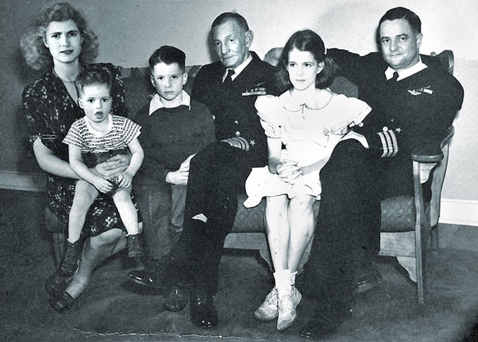 Ảnh chân dung gia đình John McCain năm 1944. Từ trái qua là bà Roberta (mẹ của McCain), Joe, John S McCain III, Đô đốc John S McCain, Sandy và bố của McCain, ông John S McCain Jr. Ảnh: Alamy.