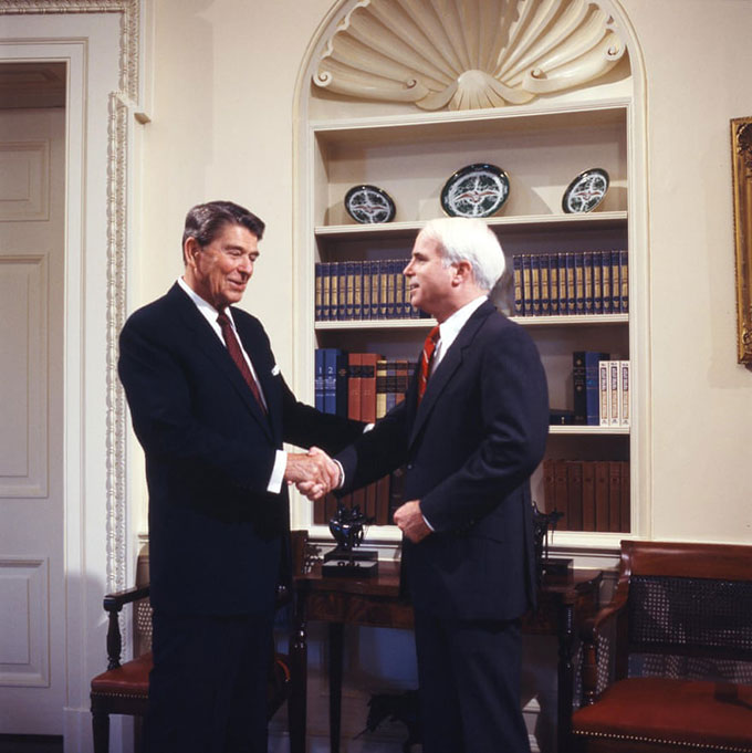 Tổng thống Ronald Reagan và John McCain tại Nhà Trắng trong thập niên 1980. Ảnh: Alamy.