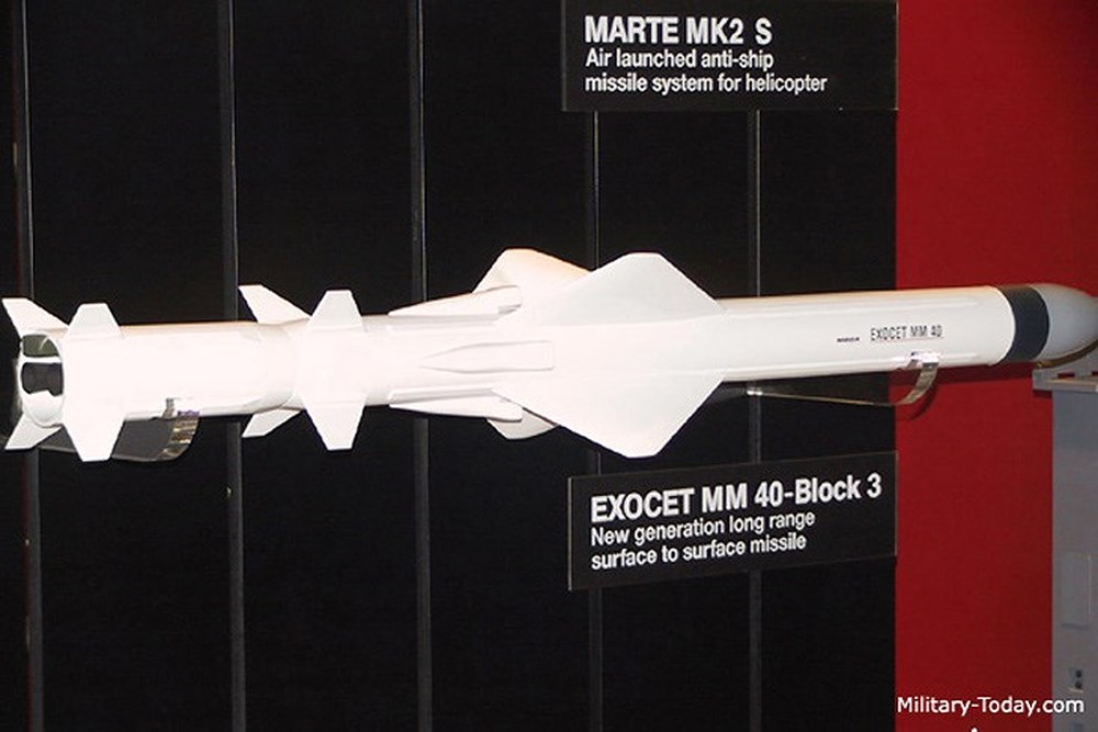 Exocet là tên lửa chống tàu mặt nước tốc độ cận âm được giới thiệu lần đầu năm 1980 và được xuất khẩu đi nhiều nước trên thế giới. Ảnh: Military-Today.