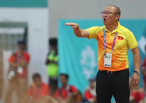 Huấn luyện viên Park Hang-seo chỉ đạo các cầu thủ trong trận đấu với Nhật Bản hôm 19/8. Ảnh: Đức Đồng.
