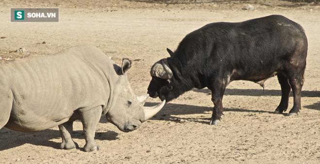 Bất chấp kích thước khổng lồ của đối thủ, con trâu "điên" lao vào cuộc đọ sức và không ít lần bị tê giác húc lăn ra đất, tuy nhiên điều đó cũng không làm con trâu bớt hung hăng. Điều bất ngờ là kẻ thua cuộc lại chính là tê giác.