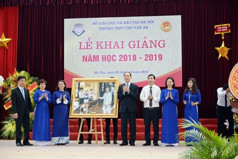 Tại lễ khai giảng, thay mặt lănh đạo Đảng, Nhà nước, Chủ tịch nước nhiệt liệt biểu dương, chúc mừng những thành quả, thành tích xuất sắc mà toàn ngành Giáo dục nói chung, giáo dục Thủ đô và Trường THPT Chu Văn An nói riêng đă đạt được trong thời gian vừa qua.