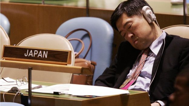 Một đại diện của Nhật Bản cũng ngủ trong Đại hội đồng LHQ thứ 60 hồi tháng Chín, 2005.