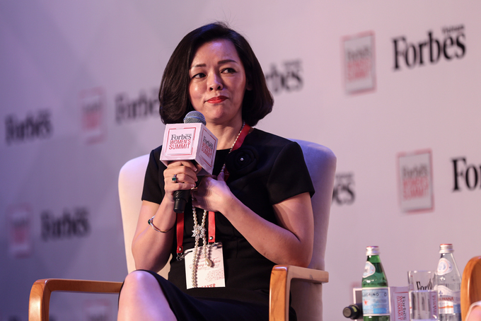 Bà Thái Vân Linh - Giám đốc chiến lược và vận hành Quỹ đầu tư VinaCapital khuyên rằng phụ nữ hăy đặt mục tiêu cao hơn những ǵ ḿnh có thể.