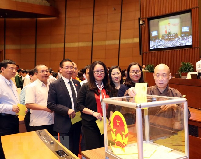 Các đại biểu Quốc hội bỏ phiếu bầu Chủ tịch nước. (Ảnh: Trọng Đức/TTXVN).