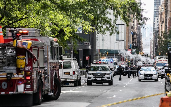 Lực lượng chức năng thắt chặt an ninh sau khi vật liệu nổ được gửi đến văn phòng của hãng tin CNN ở Manhattan (Ảnh: New York Times)