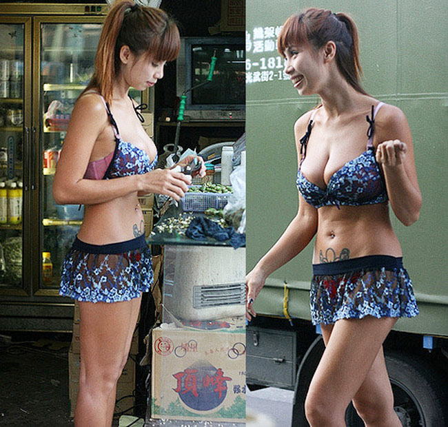 Chị em Đài Loan mặc nội y, váy ngắn để thu hút khách hàng đi đường