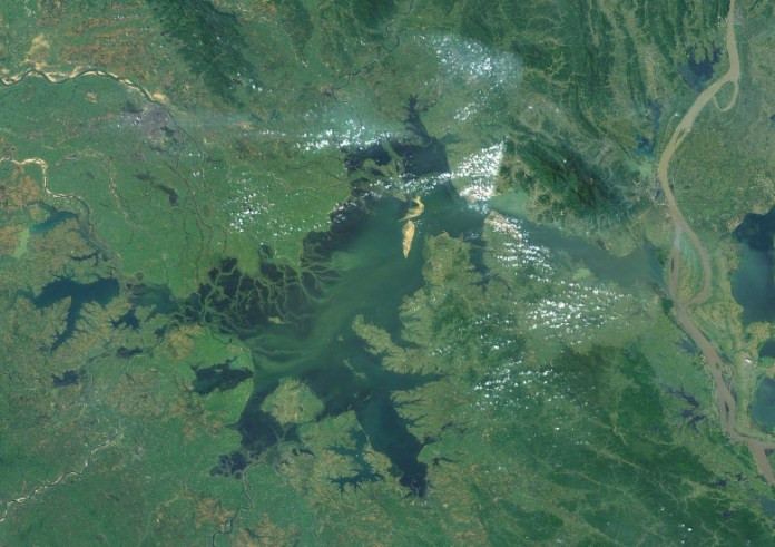 Ảnh chụp từ vệ tinh hồ Bà Dương, Trung Quốc. (Getty).