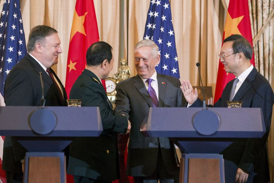 Tại cuộc họp thường niên Đối thoại An ninh và Ngoại giao Mỹ - Trung tại Washington. Hai bên đã có những yêu cầu lẫn nhau khi mối quan hệ hai nước đang ngày càng xấu đi. Ngoại trưởng Mỹ Mike Pompeo cùng Bộ trưởng Quốc phòng Mỹ Jim Mattis họp báo chung với Ủy viên Bộ chính trị Trung Quốc Dương Khiết Trì và Bộ trưởng Quốc phòng Trung Quốc.