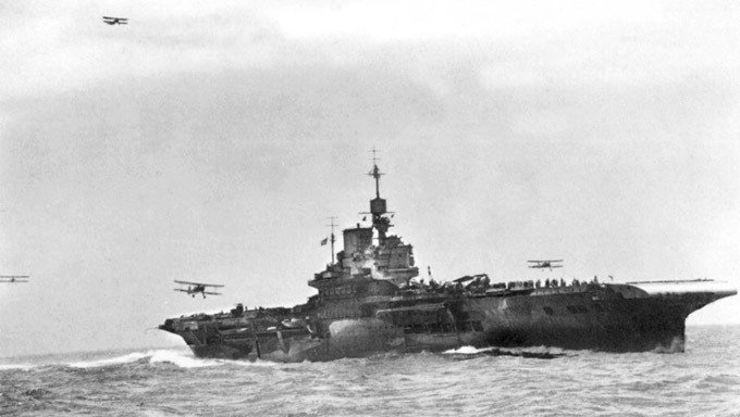 Hàng không mẫu hạm Anh Illustrious đưa các chiến đấu cơ tới tấn công dàn tàu chiến của Hải quân Italia. Ảnh: NYT