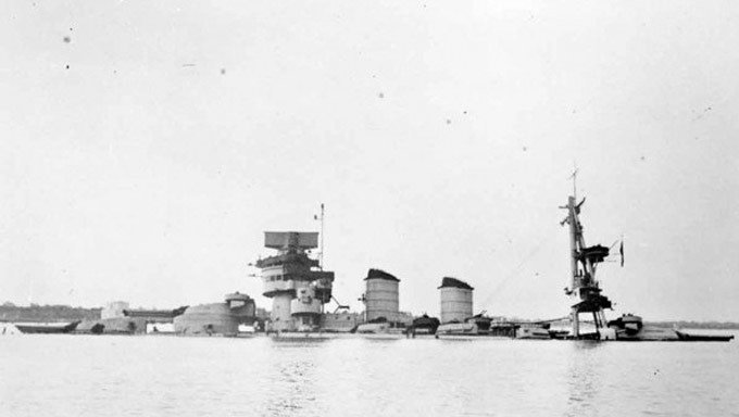 Thiết giáp hạm Conte di Cavour bị ch́m v́ trúng ngư lôi của Anh. Ảnh: History.com