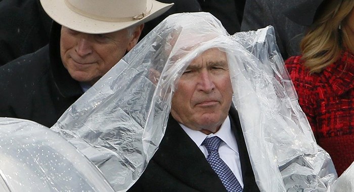Cựu Tổng thống Bush ngồi dưới mưa, tham dự lễ tuyên thệ nhậm chức của Tổng thống Donald Trump vào ngày 20/1/2017