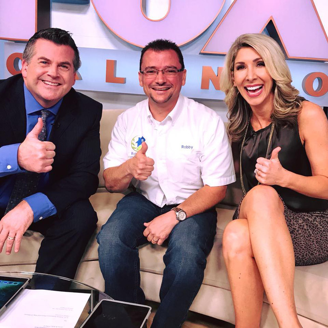 Anh Robby Robinson cùng cô Amy Kaufeldt của kênh truyền hình FOX 35. (Ảnh từ Facebook của thành phố Titusville)