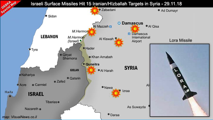 Israel dội "băo lửa" vào Syria. Có đến 15 điểm nóng Iran bị tấn công. Đêm thứ Năm, ngày 29/11, trong 75 phút quân đội Israel đă cày nát các mục tiêu của Iran và Hezbollah trong cuộc tấn công tên lửa mặt đất lớn nhất từ trước đến nay vào Syria, nguồn tin t́nh báo và quân sự của DEBKAfile tiết lộ.