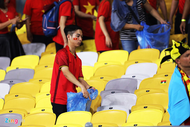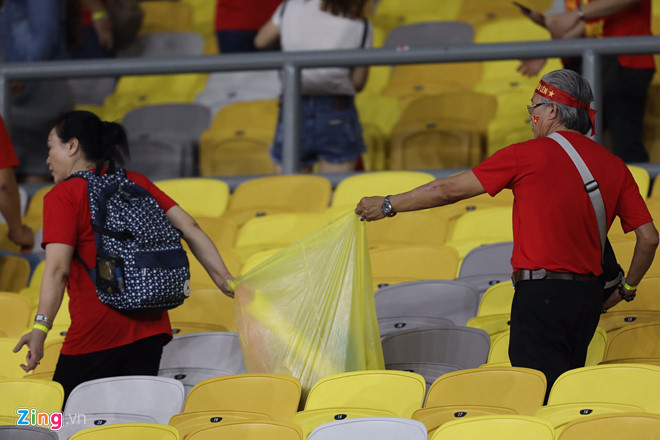 Trước hành động đầy tính văn minh, nhiều người hâm mộ Việt Nam cũng bày tỏ sự ủng hộ và chung tay cùng dọn dẹp khu vực khán đài riêng của CĐV Việt Nam được ban tổ chức sắp xếp. Chắc chắn, với việc trả lại không gian sạch sẽ cho nước chủ nhà, hành động của CĐV Việt Nam đã ghi điểm.